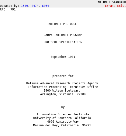 En septembre 1981, le protocole de communication TCP/IP version 4 est décrit dans les Request for comments (RFC) 791, 792 et 793. Il est installé en 1983 sur ARPANET. (wikipedia)