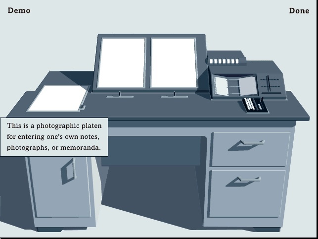 Consider a future device for individual use, which is a sort of mechanized private file and library. It needs a name, and, to coin one at random, "memex" will do. A memex is a device in which an individual stores all his books, records, and communications, and which is mechanized so that it may be consulted with exceeding speed and flexibility. It is an enlarged intimate supplement to his memory. (Bush, 1945)[1]