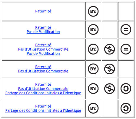 Six licences Creative Commons possibles