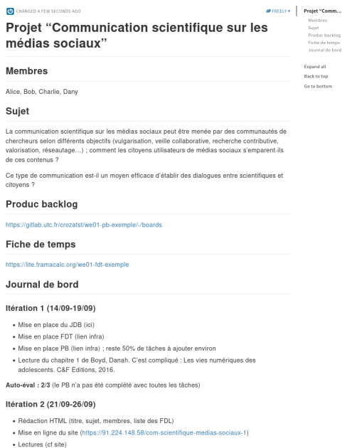 Le journal intègre la fiche de temps consolidée depuis le début du projet (par exemple sous forme d'un lien vers un autre document en ligne)