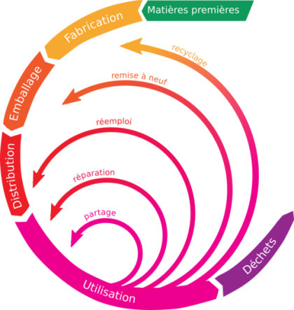 Selon Wikipedia : « L'économie circulaire est un nouveau modèle économique à vision systémique. Les notions d'économie verte, d'économie de l'usage ou économie de la fonctionnalité, de l'économie de la performance et de l'écologie industrielle font partie de l'économie circulaire.