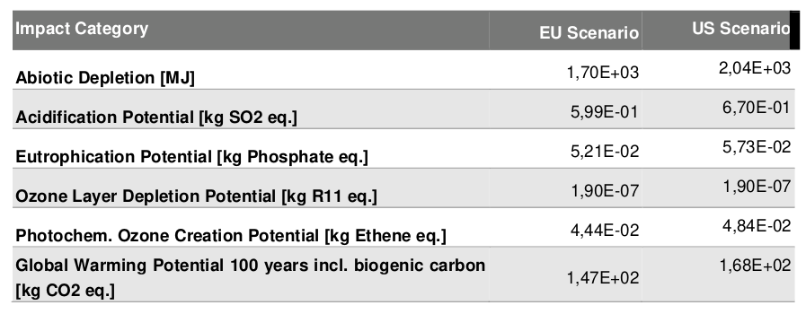 - Synthèse des résultats de l'ACV du Dell Latitude 7300. Les catégories d'impacts environnementaux prises en compte sont : épuisement des ressources abiotiques, potentiel d'acidification, potentiel d'eutrophisation, potentiel de destruction de la couche d'ozone, potentiel de création d'ozone photochimique, potentiel de réchauffement climatique. L'ACV considère deux scénarios d'usage, l'un en Europe et l'autre aux États-Unis.