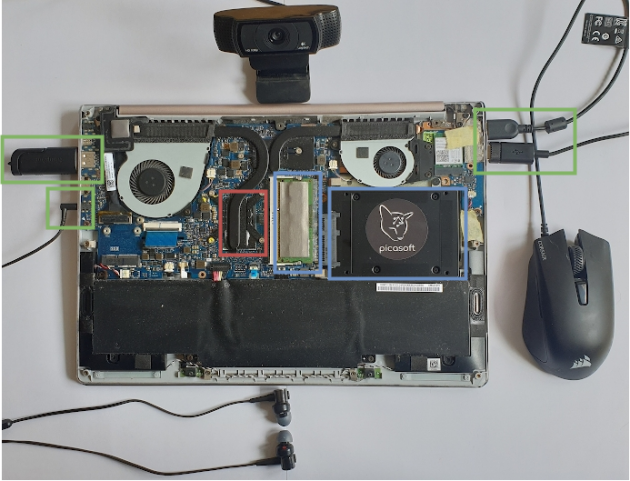 Sur cette image d'un ordinateur portable moderne, on observe bien l'architecture Von Neumann :