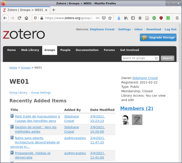 Demander à rejoindre le groupe WE01 : https://zotero.org/groups/2789808/we01 ou lownum https://www.zotero.org/groups/4417353/lownum