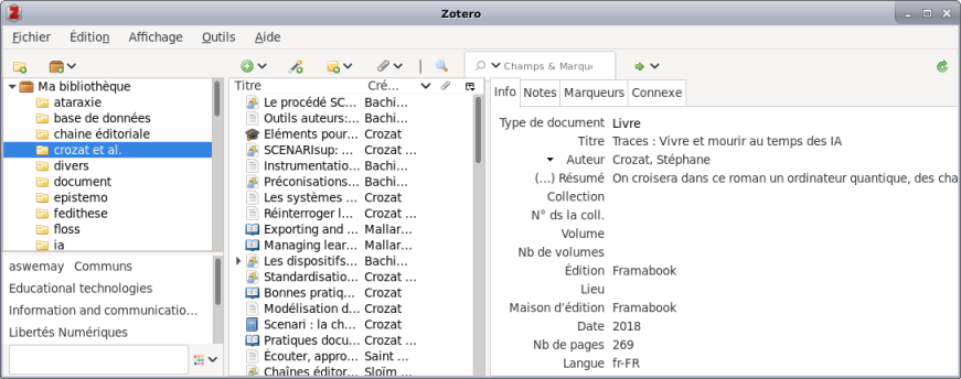 CROZAT, Stéphane, 2018. Traces : Vivre et mourir au temps des IA [en ligne]. Framabook. [Consulté le 22 février 2021]. Disponible à l'adresse : https://framabook.org/traces/